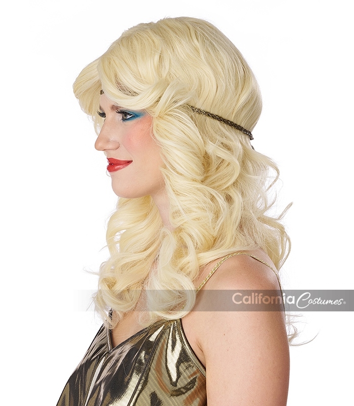 Product Description: Blonde Curled feathered medium length Wig. A feathered 70's styled wig that is great at completing a disco period look. The 70's Feathered and Fun Wig is a blonde curled wig in a medium long length.
