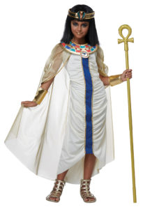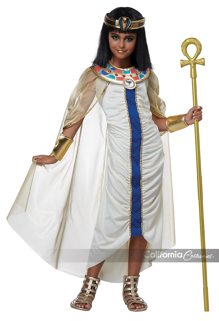 Product Description: At the heart of her grand Kingdom is the mighty Nile River. The Nile Princess child costume is a white dress with fabric gathering along a gold trimmed blue stripe. It also includes a decorated collar with attached cape, a cobra headpiece and a pair of cuffs.