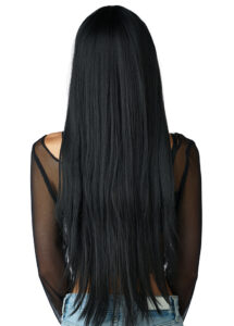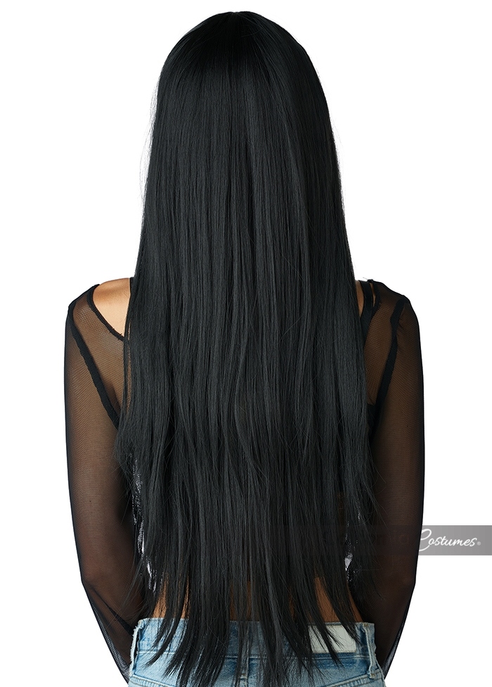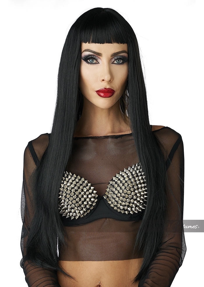 Product Description: A traditionally dark and stylish wig that complements gothic looks and characters. A long straight wig with short bangs.